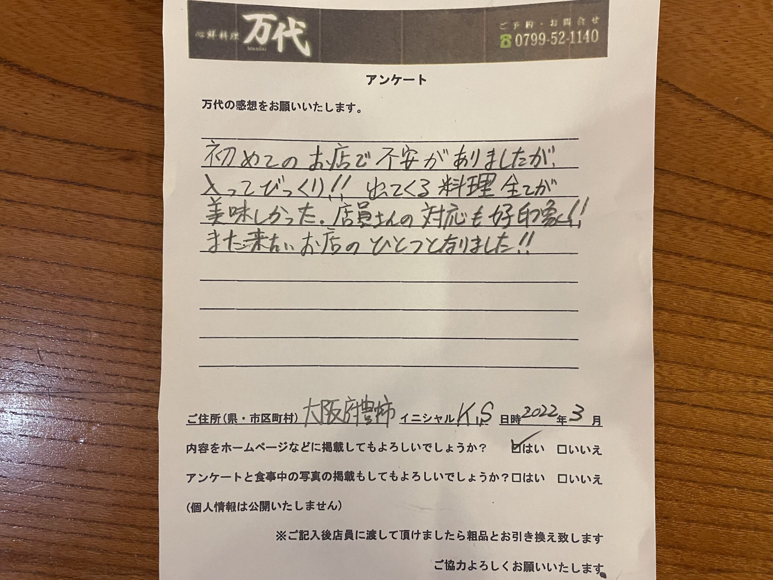 この度は、不安な中でも、万代を選びお越しいただきありがとうございました。